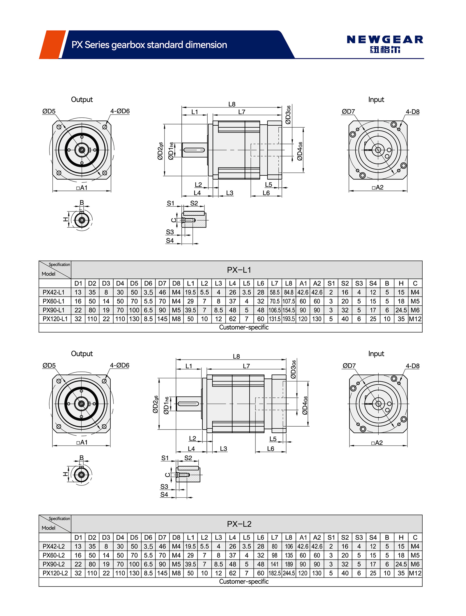 | Parametri tecnici | Serie di modelli | PX42 | PX60 | PX90 | Modello PX120 | ||