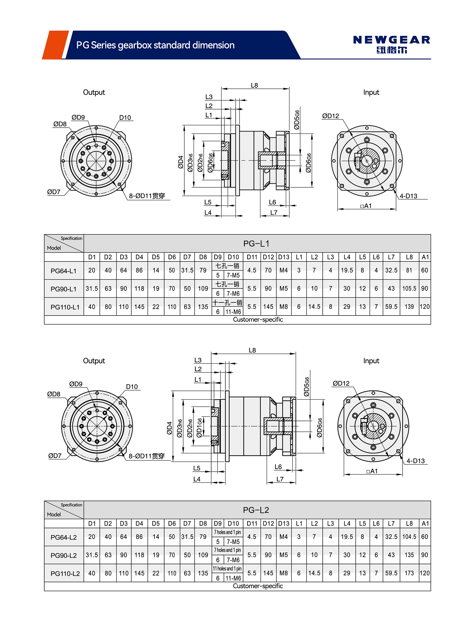 | Parametri tecnici | Serie di modelli | PG64 | PG90 | PG110 | ||