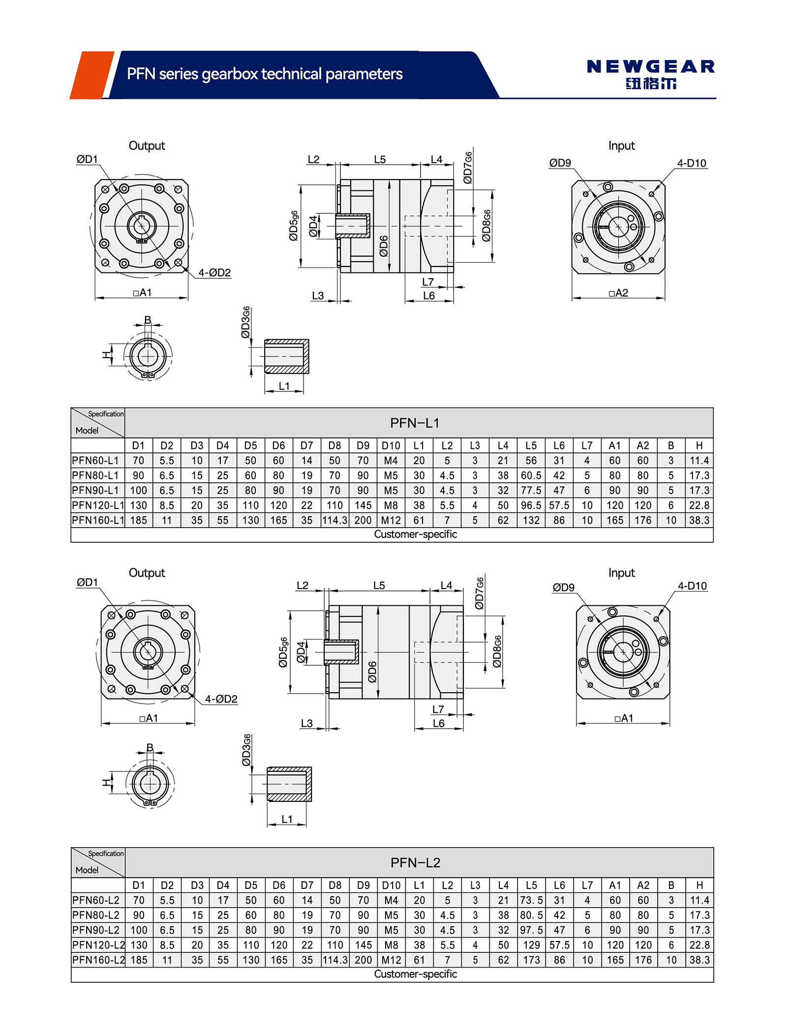 | Parametri tecnici | Serie di modelli | PFN60 | PFN80 | PFN90 | PFN120 | PFN160 | ||